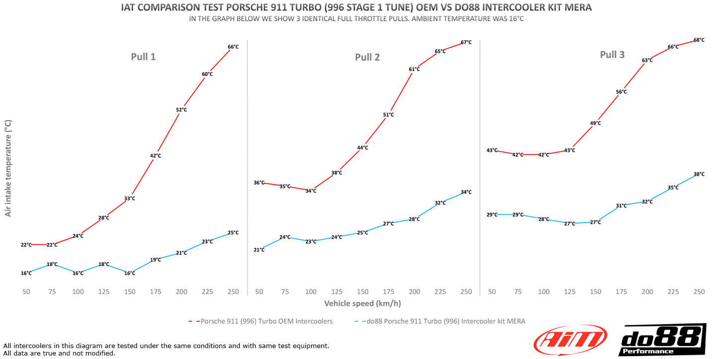 Then quickly changed parts to do88 intercoolers. Then another three runs were performed exactly the same way as with the OEM parts.