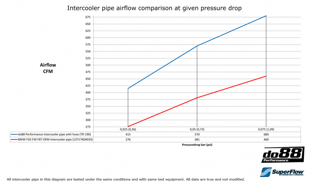 Always remember that the OEM intercooler pipes and hoses was designed for the power level the car was built for and a power increase or even very hard use of the car in a standard version may cause that the OEM pipes and hoses don’t have the performance you need. So only after engine software tune do88 pressure pipes will give a performance increase over the OEM pipes!