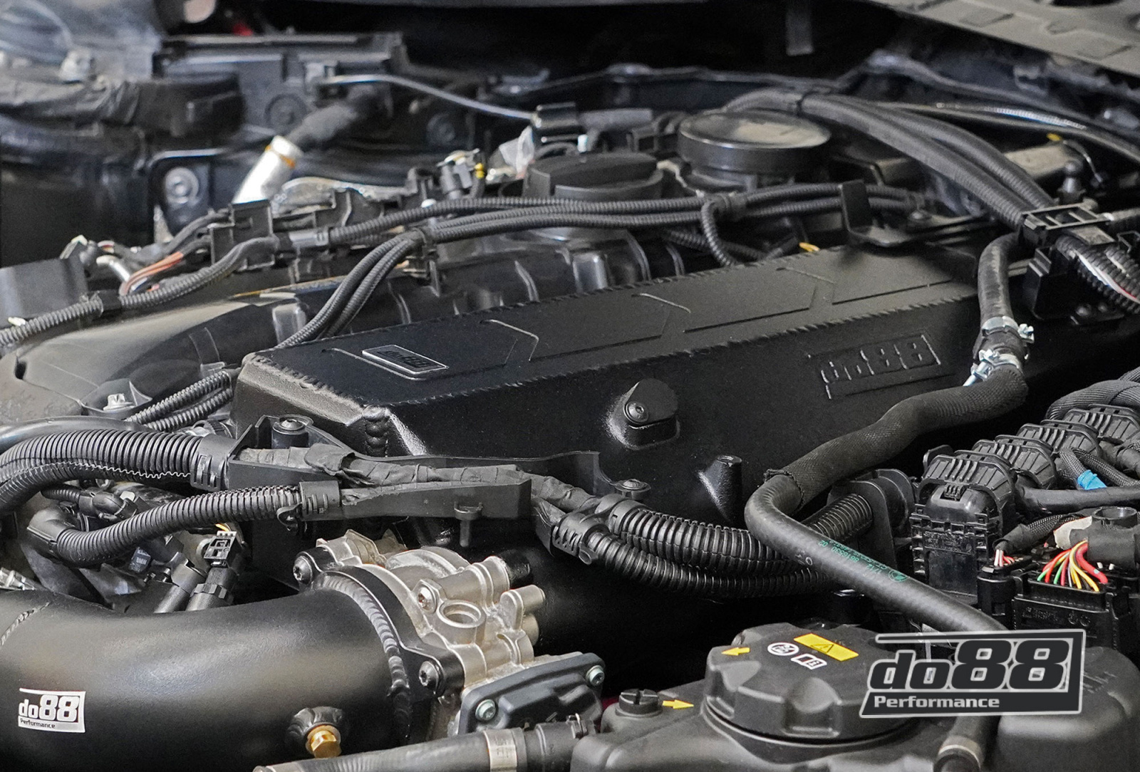 A goal during the development of our do88 manifold was to keep compatibility with the standard engine cover. It goes without saying, many enthusiasts prefer to maintain the original appearance of their engine bay if possible. With this in mind, we invested significant effort to design a charge air cooler that not only makes a massive performance upgrade, but also have the possibility to use the engine cover. We managed the challenging task of accommodating our manifold under the engine cover.