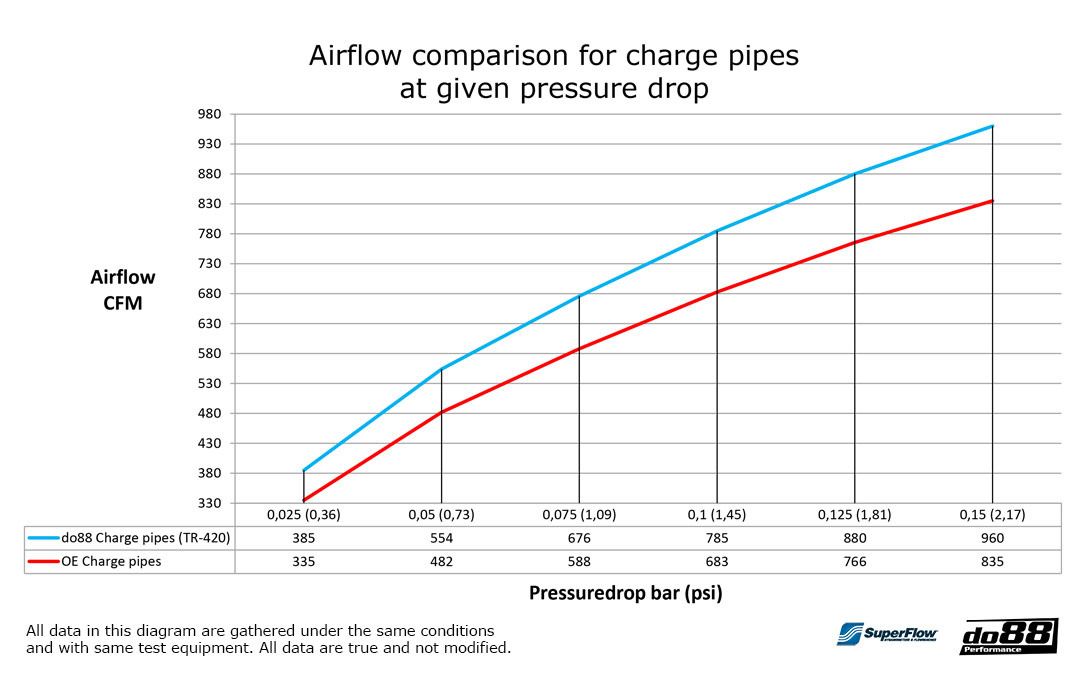- Achieves a flow of 960 CFM @ 150mbar (2.17psi), significantly outperforming the OEM's 835 CFM.