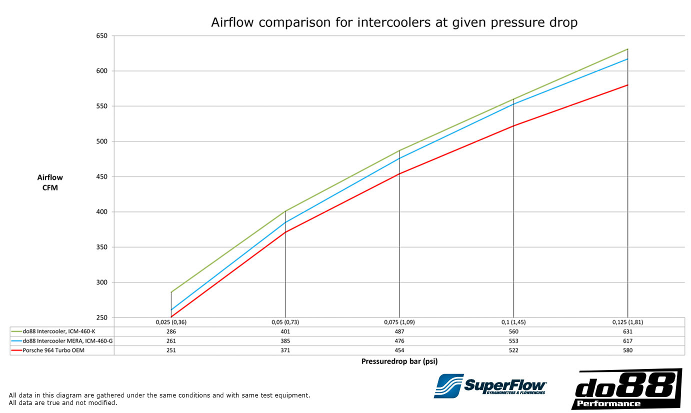 In response to these challenges, do88 has developed an intercooler with a primary goal to replicate the original look as closely as possible. Our design ensures that all fastening points, air guide, hose connections, and sensor ports are exactly where they should be, mirroring the original unit. Our intercooler have the same type of core structure as the original, featuring a 63mm (2 1/2") thick Tube & Fin core. Our development used an intercooler from the highly exotic Porsche 964 Leichtbau as the blueprint for all shapes and dimensions.