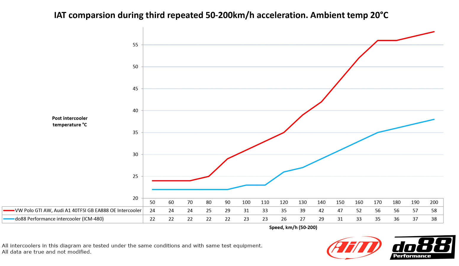 - Post intercooler air temperature at same conditions: 35°C (56°C), do88 21°C lower!