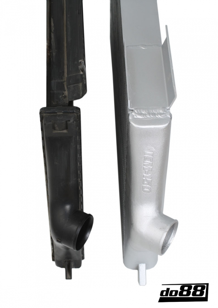 do88 performance intercooler are an all aluminium construction with cad designed, flow optimized cast end tanks and optimized core design (60mm thick) to achieve best possible cooling efficiency combined with lowest possible pressure drop!