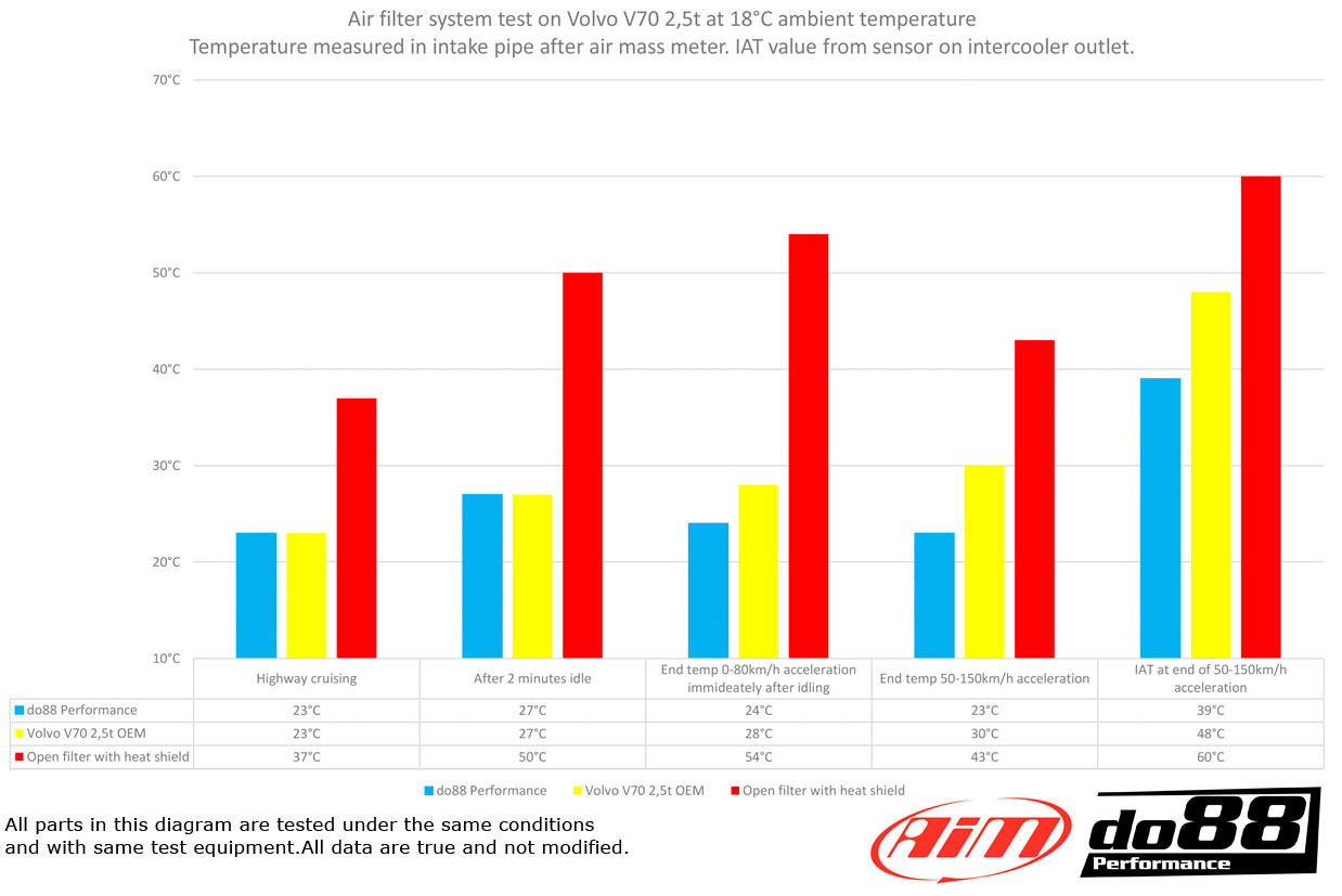 Always be aware of that the OEM intake system and air filter was designed for the power level the car was built for originally. A power increase may cause your stock intake system to not perform well enough. If your intake system doesn´t have the performance you need it will be to tough for the turbocharger to get the air it needs which will lower engine effeciency and this will make you loose hp. So even on an engine with a software tune the do88 intake system will give a performance increase over the OEM air box!